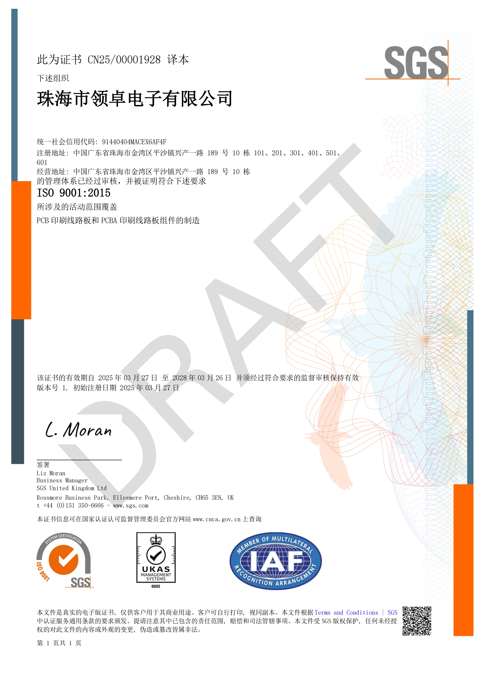 為了滿足高品質高效率的要求,領卓集團在珠海開設PCBA一站式工廠。